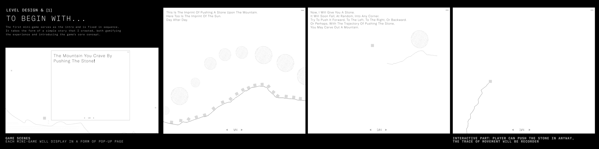 Now, I will give you a stone. It will soon fall, at random, into any corner. Try to push it forward, to the left, to the right, or backward. Or perhaps, with the trajectory of pushing the stone, you may carve out a mountain.